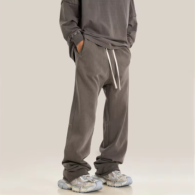 2 Prs 400gsm Cotton Blend Washed Anti Pilling Casual Straight Leg Mens Pants
