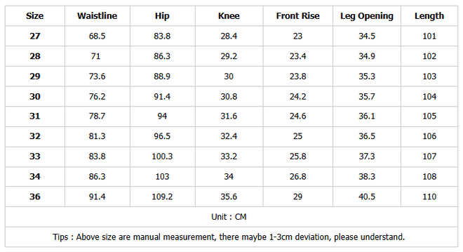Size: 27, 28, 29, 30, 31, 32-36 (please mark it in the order)