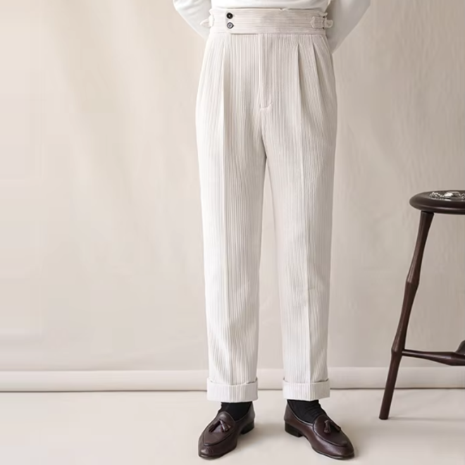 Mens Corduroy High Waisted Suit Straight Pants